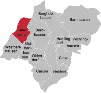 Kleekamp ist ein Ortsteil der Stadt Borgholzhausen im Kreis Gütersloh, Nordrhein-Westfalen.
