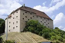 - Der Speicher (poln. Spichlerz folwarczny) ist eine ehemalige Burganlage auf einem Hang, der in Richtung Südosten zur Oder abfällt. Die Burg wurde vermutlich im 16. Jahrhundert erbaut und gehörte zum Schloss Proskau. Zu Beginn des 19. Jahrhunderts wurde die Burganlage zu einem Speicher umgebaut. Die Anlage besitzt einen L-förmigen Grundriss, vier Geschosse sowie einen offenen Innenhof.[12] Das Gebäude steht seit 1974 unter Denkmalschutz.[13]