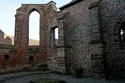 Im 15. Jahrhundert wurde das Gotteshaus umgebaut. Das südliche Seitenschiff erhielt den heutigen, ungleichmäßig dreiseitig geschlossenen Chor und eine Einwölbung mit Kreuzrippengewölben. Das nördlich angebaute Hauptschiff erhielt ebenfalls einen dreiseitig geschlossenen Chor und vermutlich ebenfalls ein Gewölbe. Diese Veränderungen wurden im Baustil der Gotik ausgeführt. Durch einen Brand im 17. Jahrhundert wurde die Kirche sehr stark beschädigt. Das Mittelschiff stürzte zu großen Teilen ein, der westliche Teil des Gewölbes im südlichen Seitenschiff stürzte ebenfalls ein und der Glockenturm wurde auch stark beschädigt.