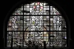 Die Fenster in der eigentlichen Arnolduskapelle stellen den Sonnengesang des Franz von Assisi, Engel, die Natur sowie Jubal, der als Stammvater aller Musiker gilt, dar. Das Fenster in der Taufkapelle zeigt eine Taube, die den Heiligen Geist symbolisiert.[17]
