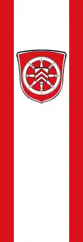 Blasonierung: „Auf rotem Schild das Mainzer Rad mit aufgelegtem Eppsteiner Schild, den roten Sparren auf silbernen Grund.“[17]