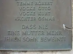 - ↑ Thüringer Verband der Verfolgten des Naziregimes – Bund der Antifaschisten und Studienkreis deutscher Widerstand 1933–1945 (Hrsg.): Heimatgeschichtlicher Wegweiser zu Stätten des Widerstandes und der Verfolgung 1933–1945. Band 8: Thüringen. VAS – Verlag für Akademische Schriften, Frankfurt am Main 2003, ISBN 3-88864-343-0, S. 271.