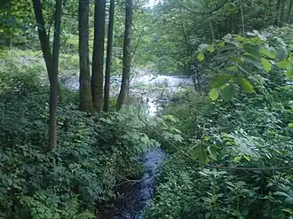 Mündung der Kleinen Steinau (vorne) in die Sieber | ||