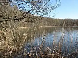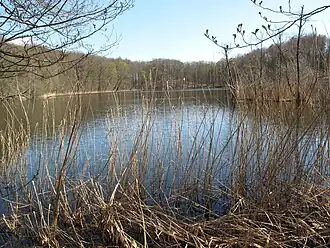 Durch die Wälder streifen Rehe, Schwarzwild und Füchse sowie seit den 2000er-Jahren zunehmend auch Marderhunde und die Neozoen Waschbären und Minks.[19] Unter den zu schützenden Säugetieren führt der FFH-Steckbrief den Fischotter und die Mopsfledermaus an.[15] Beide Tiere zählen laut Roter Liste in Brandenburg zu den vom Aussterben bedrohten Arten.[20] Über den Schutz der reichen Fledermausvorkommen im Naturpark informiert das nordöstlich des Sees gelegene Fledermaus-Museum Julianenhof. In der Amphibien-Biozönose nimmt das Vorkommen des Nördlichen Kammmolchs einen besonderen Stellenwert ein. Der Wassermolch aus der Ordnung der Schwanzlurche ist nach dem Bundesnaturschutzgesetz (BNatSchG) streng geschützt und auch die Fauna-Flora-Habitat-Richtlinie führt ihn im Anhang II als streng zu schützende Art, für die eigens Schutzgebiete auszuweisen sind.[21] In Brandenburg gilt er als stark gefährdet.[22]