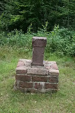 | Wp 10/38 | „Am Rotkreuz“ | Von der Turmstelle in der Nähe des östlichen Waldrandes ist außer wenigen herumliegenden Sandsteinen nichts mehr zu erkennen. Schon die Reichs-Limeskommission fand vom ursprünglichen Fundament- und Mauerwerk nur noch die Ausbruchspuren vor.[5] | ||||||