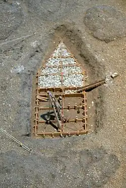- ↑ Benjamin Hoeke, Bernd Päffgen: Sarg und Sarkophag. In: Reallexikon der Germanischen Altertumskunde. Band 26, de Gruyter, Berlin 2004. ISBN 3-11-017734-X. S. 470–483; hier: S. 472.