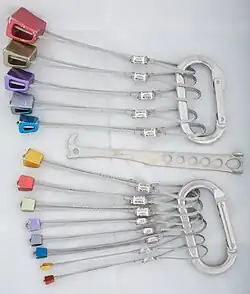 Kletterer führen häufig einen Satz Klemmkeile verschiedener Größen mit sich, aus dem sie einen mit passender Größe und Form auswählen. Dieser wird so eingelegt, dass er sich in die bei einem Sturz auftretende Zugrichtung verklemmt.[1] Besonders im Standplatzbau ist zu beachten, dass auch Zug nach oben gehalten werden muss, um einen möglichen Sturz des Vorsteigers auffangen zu können. Abspannen in die entgegengesetzte Richtung könnte das Umschlagen und Herausziehen des Klemmkeils verhindern.