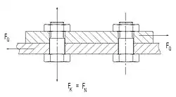 Die erforderliche Klemmkraft Fk ist abhängig von der axialen und/oder tangentialen Last in den zu verbindenden Bauteilen. Die Klemmkraft wird außerdem benötigt, um die Montagevorspannkraft zu berechnen.