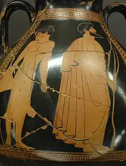 - ↑ John Boardman: Rotfigurige Vasen aus Athen. Die archaische Zeit. 4. Auflage. 1994, S. 103.