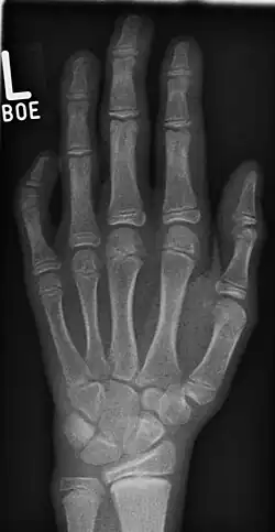 - Klinobasodaktylie: Abwinklung im Grundgelenk (Metacarpophalangealgelenk)