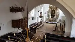 Zwei Epitaphien für Margrethe Elisabeth Siebethen († 1560) und den langjährigen Gutsinspektor Nicolai Hinrich Siebeth († 1768) hängen im Kirchenschiff. Über der Tür zum Uhrhaus steht ein kimermand, ein Glockenmännchen, von etwa 1600.