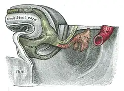 Bei den höheren Säugetieren wird eine Kloake nur embryonal angelegt,[2][1] im weiteren Verlauf der Entwicklung bilden sich getrennte Körperöffnungen für den Darm sowie für den Urogenitaltrakt. Die durch die äußere Kloakenmembran verschlossene Kloake wird dabei als gemeinsamer Ursprung der Harnblase und des Rektums in der vierten bis siebten Entwicklungswoche (beim Menschen) durch Ausbildung einer Trennwand (Septum urorectale, dem späteren Damm bzw. Perineum) in einen vorderen und einen hinteren Teil unterteilt.[5] Der vordere Teil heißt nun Sinus urogenitalis und wird von der Urogenitalmembran verdeckt, er umfasst die Ausführgänge der Gonaden und der Harnwege.[3] In seltenen Fällen kann diese Trennung ausbleiben, wodurch eine Kloake auch beim Menschen pathologisch vorhanden sein kann (persistierende Kloake).[6][2]