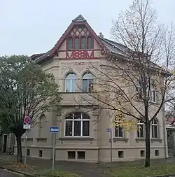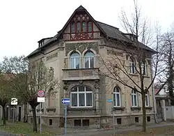 Die Villa wurde im Jahr 1894 unter Verwendung historistischer Gestaltungselemente erbaut. So findet sich auf der Westseite des Hauses, oberhalb des Hauseingangs, ein Anbau in turmartiger Ausführung, der von einer geschweiften Haube bekrönt wird. Zur Straßenecke hin verfügt das ansonsten verputzte Gebäude einen Ziergiebel aus Fachwerk. An der Fassade befinden sich auch Friese mit floralen Ornamenten. Die Fenster sind als Rundbögen gestaltet. Im Jahr 1900 wurde die Villa umgebaut.