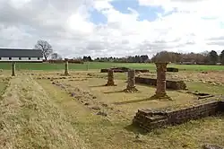 Erste Untersuchungen fanden 1853 statt, als Bauern, die im Bereich der Vierung und des Chores der Kirche – deren Lage zu diesem Zeitpunkt jedoch nicht bekannt war – eine Kiesgrube eingerichtet hatten, unter Feldbrandziegeln Skelettteile entdeckten. Bei der folgenden Begehung des Gebiets wurden neben romanischen Ziegelsteingräbern aus dem 12. Jahrhundert auch mehrere ältere kreisrunde Erdformationen gefunden.[22]