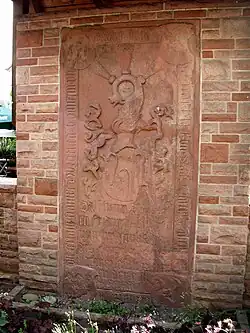 Gedenkstein zur Schlossrenovierung (1777), heute eingemauert Hauptstr. 1