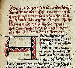 - ↑ Findhinweis zum Manuskript das den Fischbacher Chorfrauen gewidmet ist