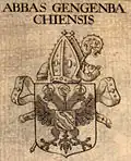 Wappen der Reichsabtei, links: von ca. 1680; rechts: Schema des Wappenschilds (beide mit differierender Darstellung von Reichsadler und Mittelschild) | |