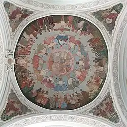 Das große Fresko in der Kuppel wurde 1940/41 durch Professor Franz Klemmer aus München neu geschaffen.