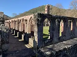 Im Jahre 1474 begann unter Erhaltung der Abteikirche der Abriss der romanischen Klausurgebäude, die man bis 1516 durch gotische Neubauten ersetzte. Beteiligt waren u. a. die Meister Peter von Koblenz, Hans Spryß von Zaberfeld und Martin von Urach.[14]