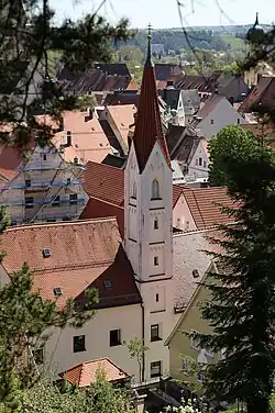 Die im Jahr 1900 seliggesprochene Maria Crescentia Höss wurde 1741 einstimmig zur Oberin gewählt und stand bis zu ihrem Tod 1744 der Gemeinschaft vor. Das Kloster wurde 1803 im Zuge der Säkularisation aufgelöst. Von 1803 bis 1806 nutzte der Deutsche Orden die Klostergebäude.