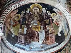 Das älteste Freko aus dem 14. Jahrhundert befindet sich an der südlichen Außenwand des Katholikon. Es zeigt die Muttergottes im Gebet.