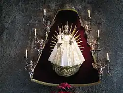 Eine Legende berichtet, dass ein kleiner Hirtenjunge mit seiner Mutter auf dem Feld hoch auf dem Felsplateau, auf dem heute die Anlage steht, das Vieh hütete. Während die Mutter in der Mittagshitze in einer Höhle Schlaf suchte, wagte sich das Kind beim Spielen zu nah an die Klippe und fiel die steile Felswand hinunter. Als die Mutter erwachte, ihr Kind nicht mehr fand und ins Tal eilte, traf sie ihren Sohn dort unversehrt an. Er berichtete, er sei von einer Frau aufgefangen worden. Der Vater des Kindes war sich sicher, dass es sich bei jener mysteriösen Frau, die ihm sein Sohn beschrieb, nur um die Erscheinung der Gottesmutter Maria handeln könne. Zum Dank für die Rettung liess er ihr zu Ehren eine Kapelle über der Höhle errichten, in der die Mutter geschlafen hatte; diese Stätte zog seither viele Pilger an.