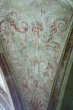 Im Langhaus sind zwei Szenen jüngeren Datums gemalt: eine Anbetung der Könige und ihr gegenüber eine Darstellung von Zisterziensern, die ihrer heiligen Maria mit dem Kind eine Klosterkirche darbringen und ihr ihre Verehrung erweisen.