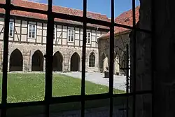 Die von der Klausur umschlossene freie Fläche wird als Kreuzgangshof oder Kreuzgarten bezeichnet. Er steht für die Erinnerung an den verlorenen Paradiesgarten mit dem Baum der Erkenntnis und dem Baum des Lebens. Deswegen gehört auch in diesen Bereich das Wasser. Dem Refektorium vorgelagert war das Brunnenhaus, in dem sich die Mönche vor den Mahlzeiten wuschen. Zudem wurde hier die Tonsur geschoren. Noch im 17. Jahrhundert war ein „großer Runder Rohr wasserstein“, die Waschschale, vorhanden. Spuren lassen sich noch am Mauerwerk erahnen. Heute wird der Hof für unterschiedliche Veranstaltungen genutzt.