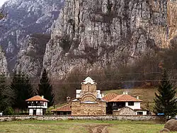 Die Klosterkirche ist als einfacher Kreuzkuppeltyp mit Trikonchos und Narthexkuppel ein frühes Bauwerk der Morava-Schule, oder der Tarnowo-Schule und nach 1371 entstanden. Die Fassade ist mit dem für den Stil der Palailogischen Renaissance kennzeichnenden ornamentalen Baudekor gestaltet.