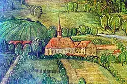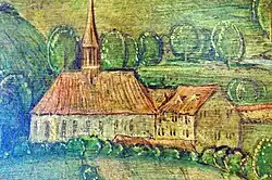 Auf dem von Hans Leu d. Ä. geschaffenen Altarbild aus der Zwölfbotenkapelle des Grossmünsters sind die Klostergebäude am Nordhang des Uetlibergs zu erkennen. Dies ist die einzige zeitgenössische Darstellung der Klosteranlage, in Form einer kleinen Gebäudegruppe auf einer Anhöhe. Die zentrale Kirche (Marienpatrozinium 1273 erwähnt) ist mit polygonalem Chorhaupt und hohem Dachreiter dargestellt, das Schiff weist sieben hohe Fenster auf, mit einem Zwischenraum zwischen dem vierten und fünften Fenster. Dies wird als eine Unterteilung des Kirchenraums gedeutet, mit dem Nonnenchor im Osten und dem Konversenchor im hinteren, westlichen Teil der einschiffigen Saalkirche. Im Westen scheint ein niedriges Gebäude anzuschliessen und ein weiteres zweistöckiges Gebäude, von der Kirche durch eine Mauer getrennt. Auf der Stadtansicht von Gerold Edlibach von 1485 sind davon abweichende, aber nicht detaillierte Merkmale zu erkennen. Urkundlich belegt sind die Kirche mit dem Kirchhof und Klostertor, das Kapitelhaus, der Kreuzgang, ein Dormitorium, das Haus des Kaplans, ein Gasthaus und verschiedene Wirtschaftsgebäude, dazu die Stube der Nonnen mit Ofenheizung sowie ein Siechen- und ein Badhaus.[3]