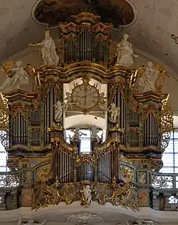 Die Hauptorgel auf der Empore über dem Eingangsbereich wurde 1966/67 als Opus 1349 von der Orgelbaufirma Klais aus Bonn als Ersatz einer Walcker-Orgel von 1880 in den vorhandenen wohl noch von Johann Georg Fischer geschaffenen barocken Orgelprospekt eingebaut. Sie verfügt über drei Manuale und ein Pedalwerk mit insgesamt 46 Registern.[6] Die Orgel wurde 2014 saniert. Sie hat folgende Disposition:[7]