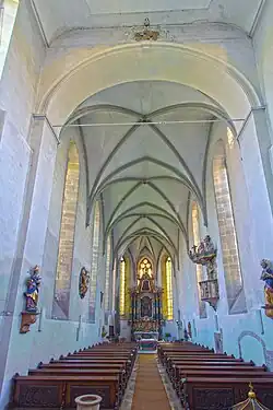 Das Kirchenschiff mit der Nonnenempore wurde im 18. Jahrhundert im Barockstil umgebaut. Südlich schließt sich die Johanneskapelle an den Chor an, die heute als Sakristei verwendet wird. Sie entstand in der Mitte des 13. Jahrhunderts. Die reichhaltigen Stuckdekorationen im Innern der kleinen Kapelle im Stil der Renaissance aus der Zeit um 1600 erinnern an die Klosterkirche St. Luzen in Hechingen.