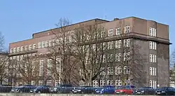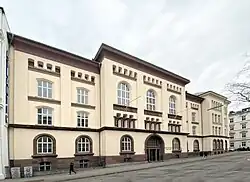 Das Hauptgebäude wurde ursprünglich für das Lyzeum am Lübeckertorfeld (Werksliste 213) errichtet und als Teil eines Ensembles mit zwei weiteren Schumacher-Bauten geplant: die Technische Staatslehranstalt (Werksliste 116) gehört zur Hochschule für Angewandte Wissenschaften Hamburg und die Kaufmännische Schule (Werksliste 214) wurde zur Beruflichen Schule Am Lämmermarkt (beides Stand 2019). Diese drei Gebäude beziehen sich in Achsen und Dimensionen aufeinander, durch in der Nachkriegszeit dazwischengeschobene Neubauten sind diese Zusammenhänge nicht mehr erkennbar.[15]