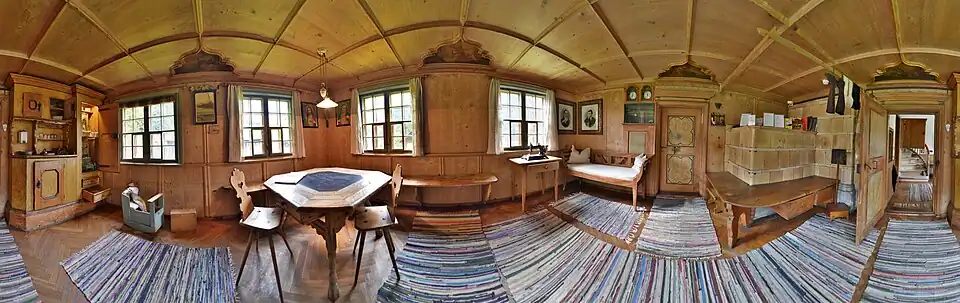 Das Anwesen aus dem Jahr 1642 mit einem Bauernhaus und einem Stall, wobei der First der Satteldächer in einer Linie lagen, wurde 1874 mit einem Zwischentrakt versehen, womit die Bewohner trockenen Fußes zur Stallarbeit gehen konnten. Vor dem Wohntrakt des heute denkmalgeschützten Objekts befindet sich ein eingezäunter Bauerngarten. Vor dem Stalltrakt, wo ehedem der Misthaufen war, befindet sich jetzt ein Parkplatz.