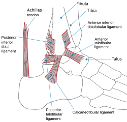 Aufgrund seiner Beweglichkeit handelt es sich beim Sprunggelenk um ein Scharniergelenk, dessen Bewegungsachse horizontal durch den Innen- und Außenknöchel verläuft. Dieses Scharniergelenk ist für das Heben und Senken des Fußes zuständig. Das Drehen des Fußes wird vom unteren Sprunggelenk übernommen.