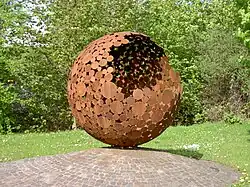 • Die Gebrochene am Bürgermeister-Bade-Platz, 2009 von Thomas Lehnigk; an einer Seite offene stählerne Kugel als Erde, mit der schonend umzugehen sei.