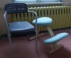 Der Orthopädische Kniestuhl, manchmal auch Computerstuhl oder Gesundheitsstuhl genannt, ist ein gepolstertes Sitzmöbel, das ähnlich wie ein Drehstuhl aufgebaut ist. Der Unterschied ist, dass keine Rückenlehne angebracht ist, sondern nur eine Sitzfläche und eine Stützfläche für den Unterschenkel und das Knie montiert ist, die sich unter der Sitzfläche befindet. So „kniet“ man quasi auf dem Stuhl.