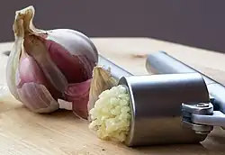 Die Knoblauchpresse ist ein Küchengerät zum Durchpressen von Knoblauchzehen.