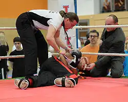 Die Entscheidung, ob ein Kämpfer kampfunfähig ist, unterliegt in der Regel dem Ermessen des Ringrichters oder eines Ringarztes.[4]
