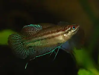 - ↑ a b c Trichopsis vittata auf Fishbase.org (englisch)