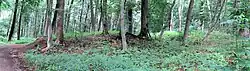 Im Jahr 1900 wurde am Westhang einer Sanddüne eine Erdbefestigung freigelegt. Diese Befestigung war nierenförmig und hat einen Längsdurchmesser von 330 Metern. Im Zentrum befand sich eine Siedlung, die von einem Wall mit Brustwehr und doppelten Graben geschützt wurde. Zusätzlich war die Siedlung durch eine Reihe spitzer Pfähle und geflochtenes Astwerk geschützt. Es bestanden fünf Zugänge, die verschlossen werden konnten.