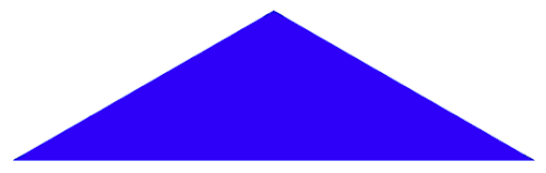 - Die Startfigur ist ein gleichschenkliges Dreieck mit den Innenwinkeln 30°, 30° und 120° (Bild 3). Aus diesem Dreieck wird ein gleichseitiges Dreieck herausgeschnitten, dessen Seitenlänge der längsten Seite des gleichschenkligen Dreiecks ist. Dabei entstehen zwei neue gleichschenklige Dreiecke mit der Seitenlängen. Mit jedem Iterationsschritt werden wiederum gleichseitige Dreiecke aus jedem gleichschenkligen Teildreieck herausgeschnitten, sodass sich der Flächeninhalt um den Faktor verringert. Die übrigbleibende Fläche nähert sich dabei der Koch-Kurve an.[4]