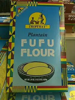Als Kochbananenmehl bezeichnet man unreife Kochbananen die getrocknet, zerhäckselt und anschließend gemahlen wurden.[1] Es kann wie herkömmliche Mehle verwendet werden und hierbei je nach Anwendung herkömmliches Mehl komplett ersetzen. Sein hoher Gehalt an Ballaststoffen macht seinen Einsatz als Functional Food interessant.[2] Außerdem kann es durch den hohen Stärkegehalt als Stärkeersatz und zum Binden von Soßen[3] oder für die Puddingherstellung genutzt werden.