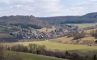 ![]() Blick von Westen auf Kocherstetten mit Schloss Stetten (2013)