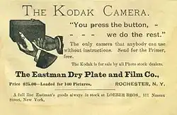 Eine Besonderheit der Kodak Nr. 1 war der Filmentwicklungsdienst; der einprägsame Werbeslogan zur Kamera lautete: “You press the button, we do the rest” (dt. „Sie drücken den Knopf, wir erledigen den Rest“).