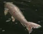 Abbildung eines Platin-Ogons, das durch eine KHV-Infektion vollständig rot ist | ||||||||||||||||||