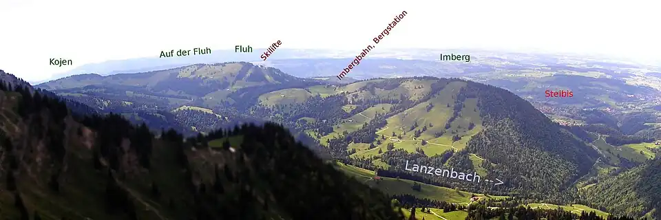 Der bekannte Ski- und Ferienort Steibis liegt auf einer Hochebene des Nordhangs des 1325 m ü. NHN erreichenden Imbergs im Nordosten des Kojen-Schichtkamms. Dieser liegt im Vergleich zur weiteren Kammlinie etwas nach Süden versetzt.