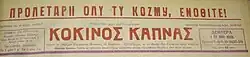 Die Zeitung wurde 1932 von Michail Kalaidopulo gegründet. Die erste Ausgabe erschien am 17. Juni desselben Jahres.[2] Die Zeitung erschien auf Neugriechisch,[3] wenngleich auch gelegentlich Artikel auf Pontisch publiziert wurden. Allerdings wurde nicht die standardgriechische Rechtschreibung genutzt, sondern eine radikal vereinfachte, rein am Lautwert orientierte (phonologische) Orthographie mit 20 anstatt den 24 Buchstaben des griechischen Alphabets. Sie war eine der wenigen griechischen Publikationen in der Sowjetunion.[4] 1936 wurde Kokinos Kapnas in Komunisti (Κομυνιστι) umbenannt. Chefredakteur wurde Georgi Bumburidi. 1937 erreichte die Auflage etwa 4.000 Exemplare.