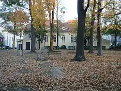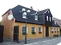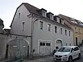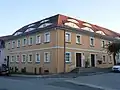 1819 | Der Vorgängerbau an dieser Stelle, ein Wohnhaus von 1765, wurde 1819 durch einen Neubau ersetzt. Ab 1885 befand sich das Haus im Besitz der Familie Glitsch. Danach diente es als Dienstwohnung des Knabenschulheims und des späteren Alten- und Pflegeheims. Heute wird das massive, eingeschossig Haus mit Krüppelwalmdach als Wohnhaus genutzt. An der Vorderseite des Dachs befinden sich fünf Fledermausgauben, an der Rückseite fünf Dachhäuschen. | 09253032 |