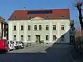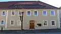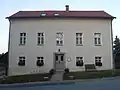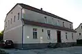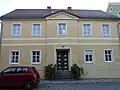 Der Bau ist zweigeschossig ausgeführt; die Fassade zeigt einen gegiebelten Mittelrisalit, eine Putzgliederung mit angedeuteter Kolossalordnung, einen Kniestock und acht Fensterachsen. Die Bausubstanz ist weitgehend original erhalten. |
